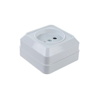 Главная Электрика Вилки и розетки, электроустановочные устройства Розетка 1-м ОП Олимп 16А с заземл. бел. UNIVersal