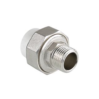 Полипропиленовый фитинг для создания разъемного, с использованием накидной гайки, соединения полипропиленового трубопровода с трубопроводом или арматурой из других материалов.